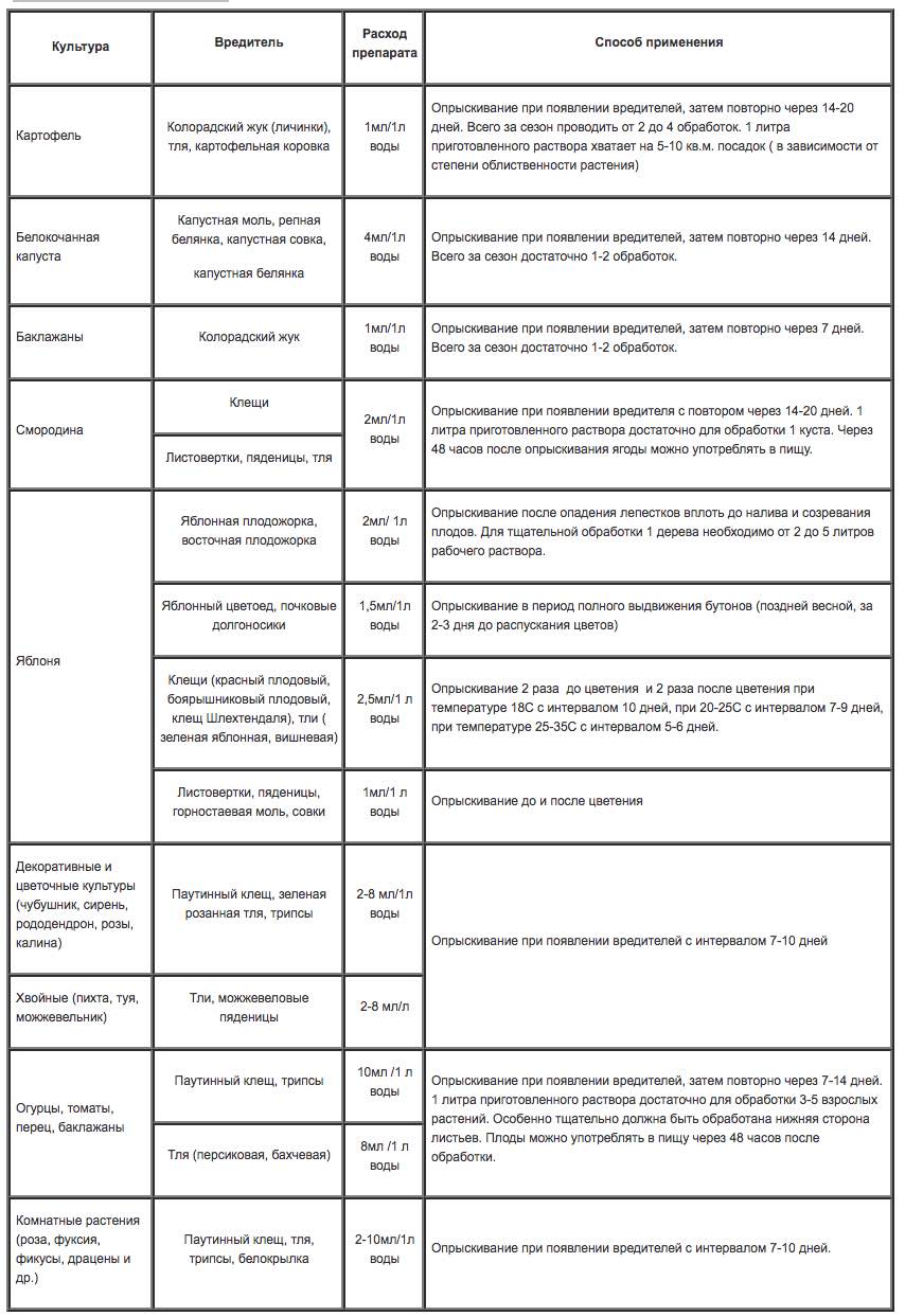 Вредители перестают питаться и наносить вред через 6-12 часов после обработки, погибают на 3-5 сутки.